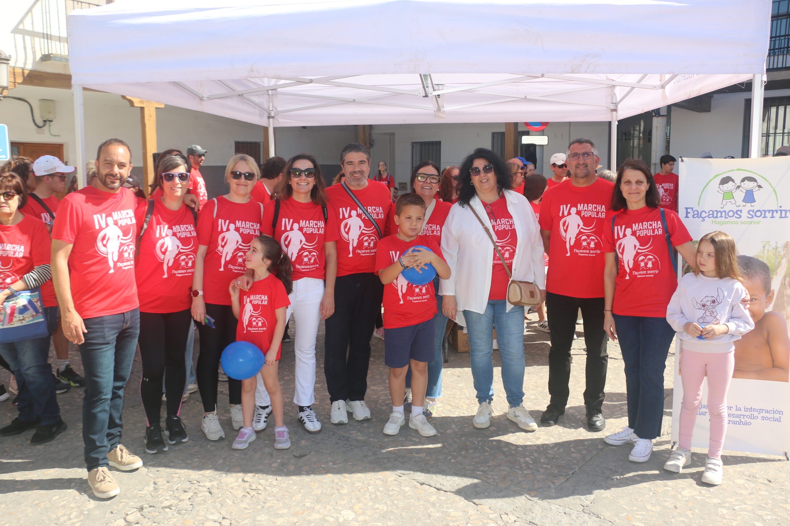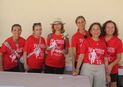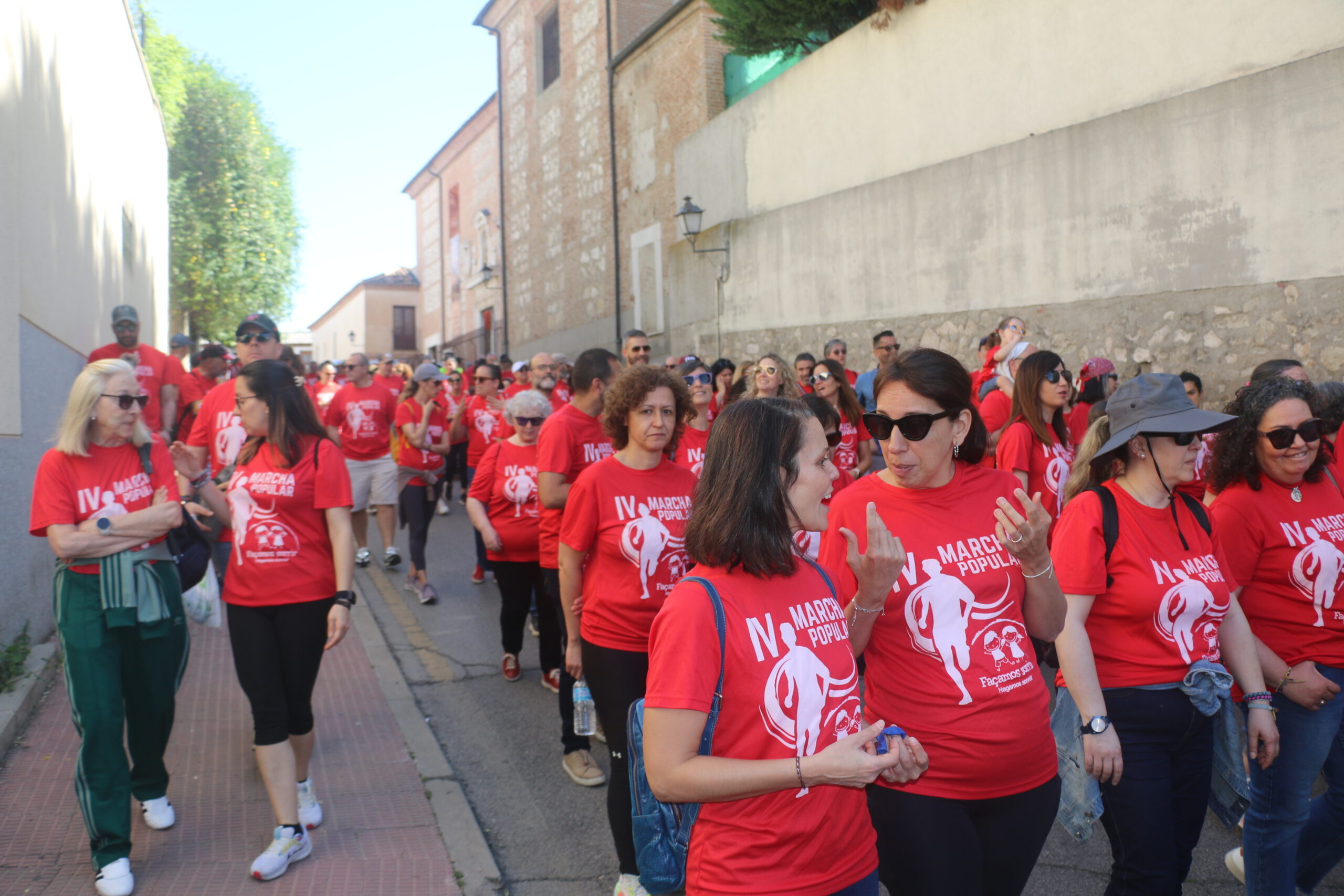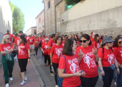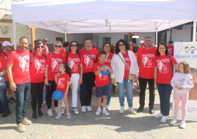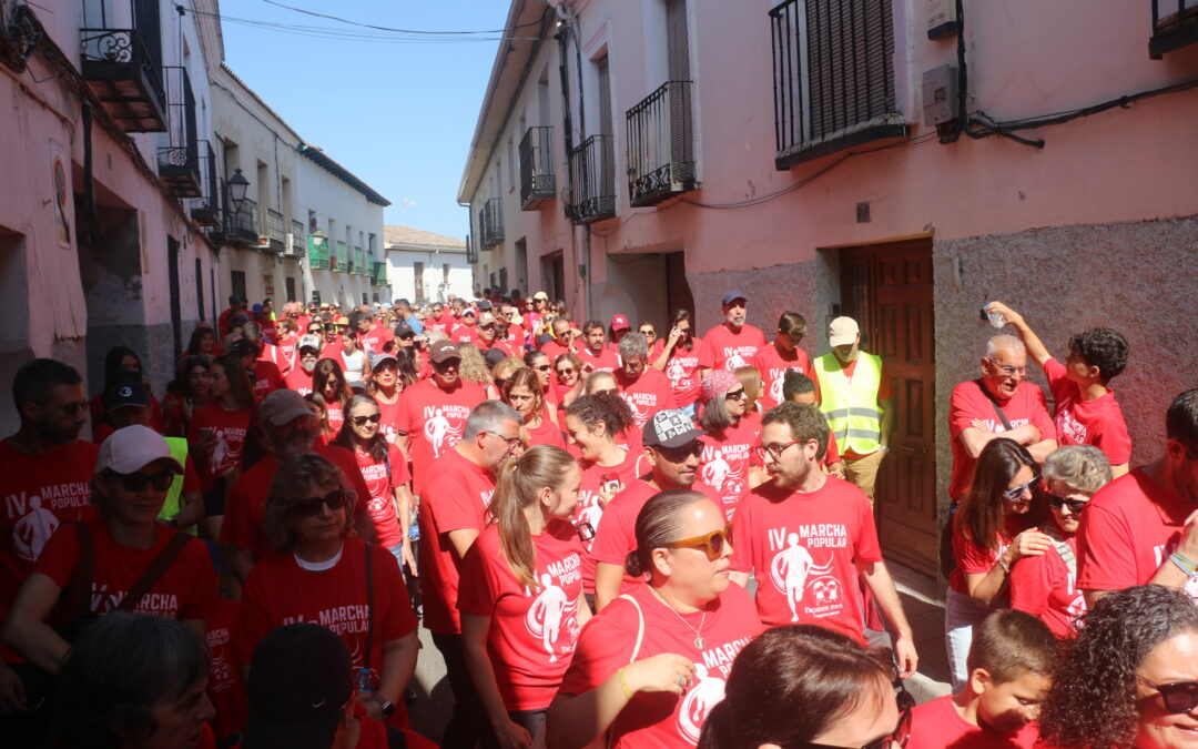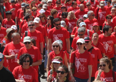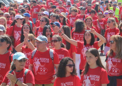 Cerca de 300 personas, todas vestidas con la camiseta roja conmemorativa de la marcha, se concentraron en la Plaza del Ayuntamiento. Tras unas breves palabras por parte de la Junta Directiva de la Asociación y de nuestro alcalde, David Conde, la marcha comenzó.