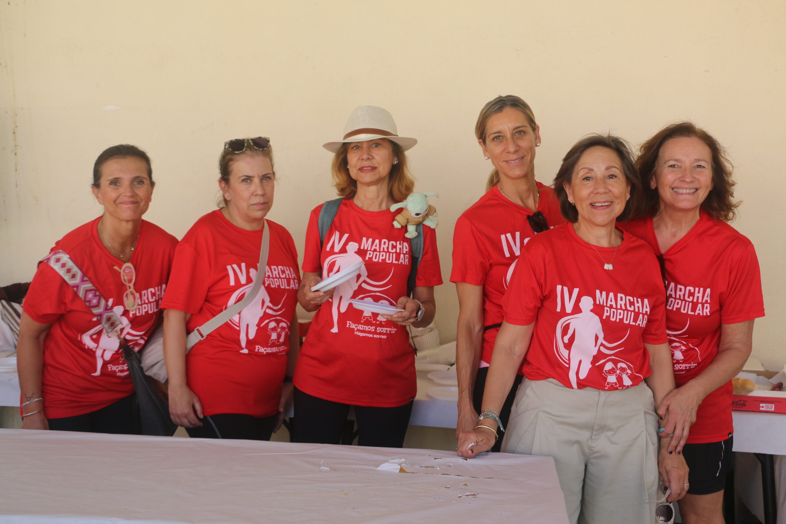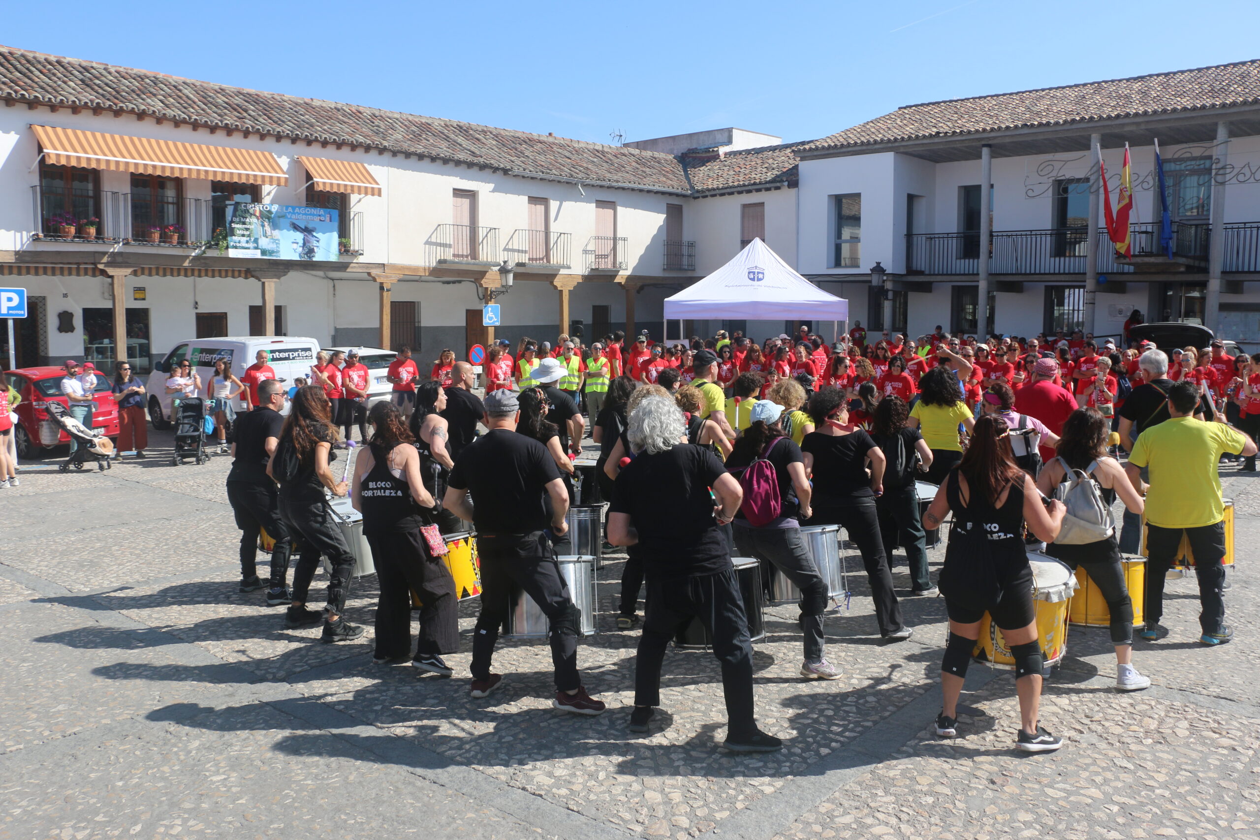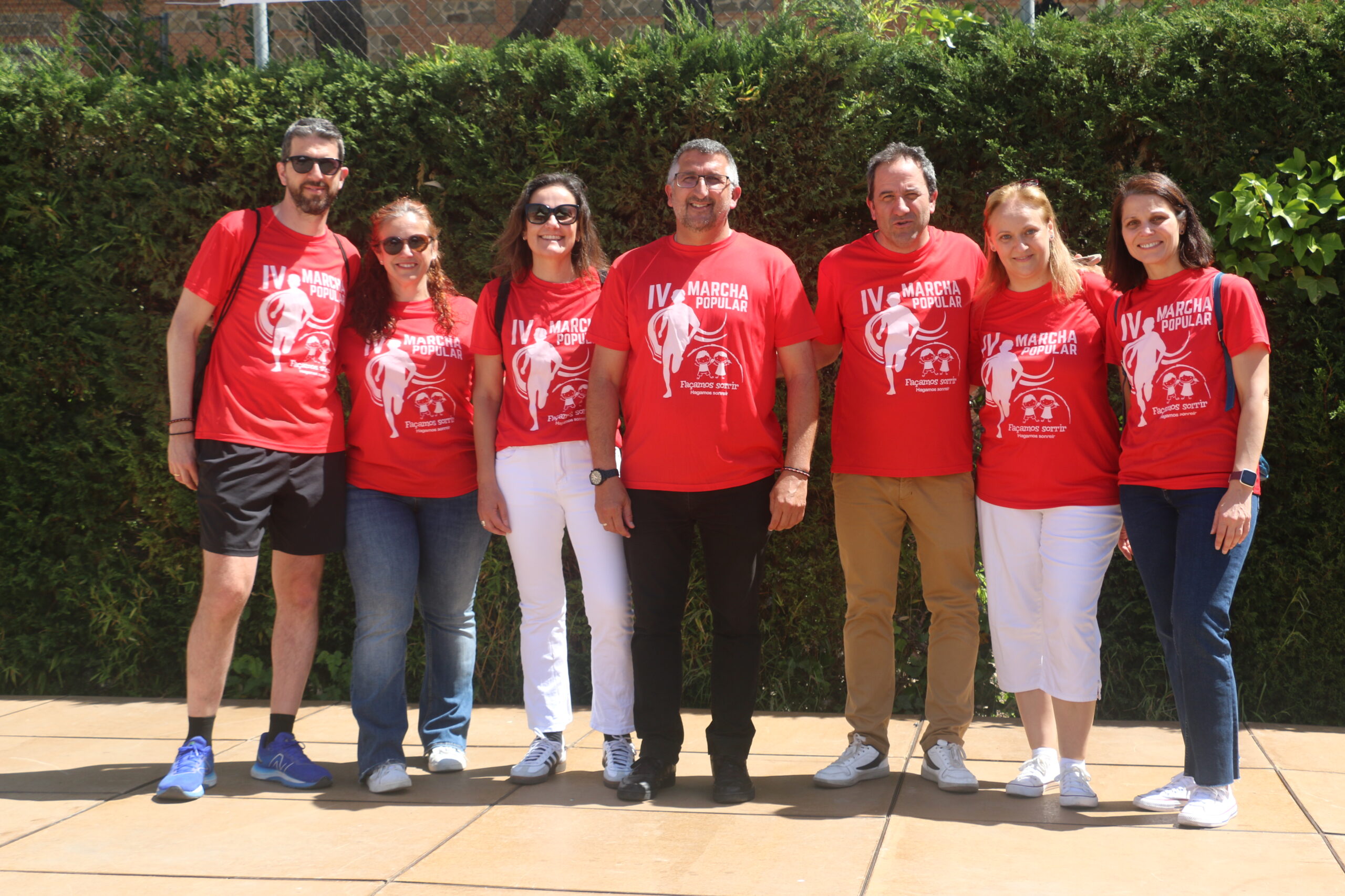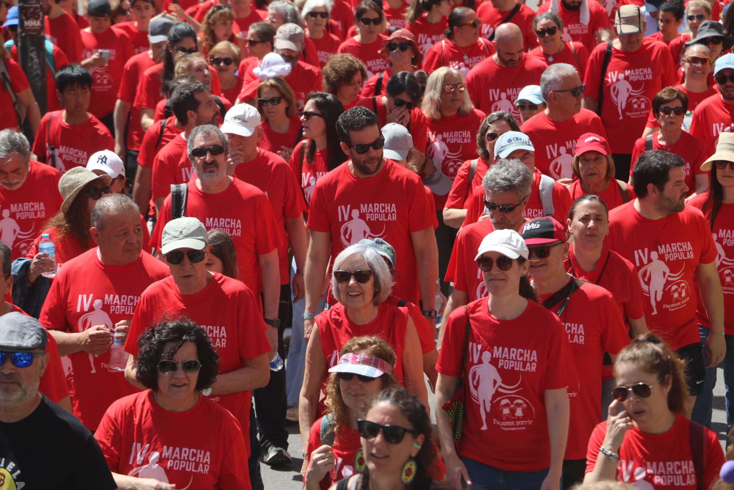 Cerca de 300 personas, todas vestidas con la camiseta roja conmemorativa de la marcha, se concentraron en la Plaza del Ayuntamiento. Tras unas breves palabras por parte de la Junta Directiva de la Asociación y de nuestro alcalde, David Conde, la marcha comenzó.